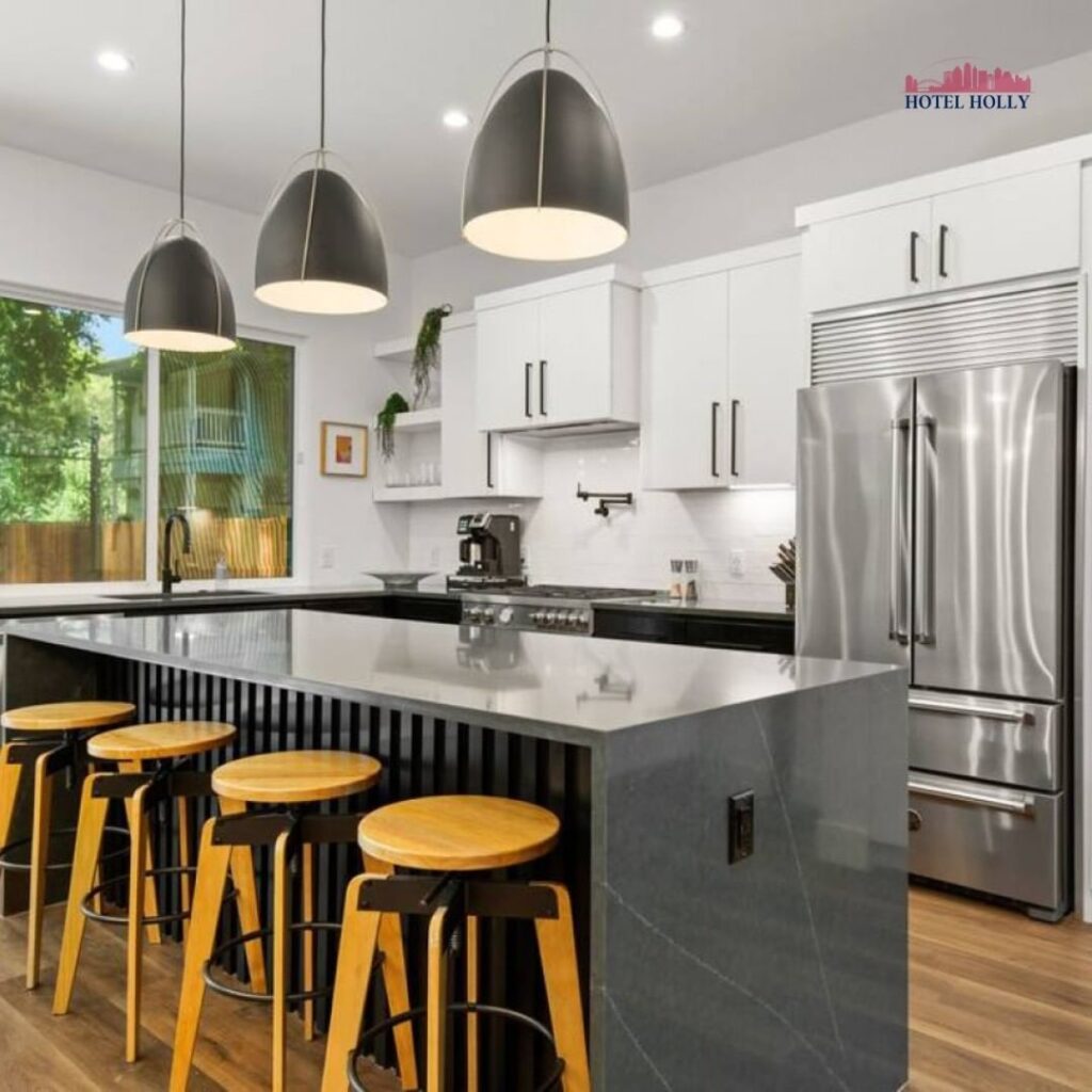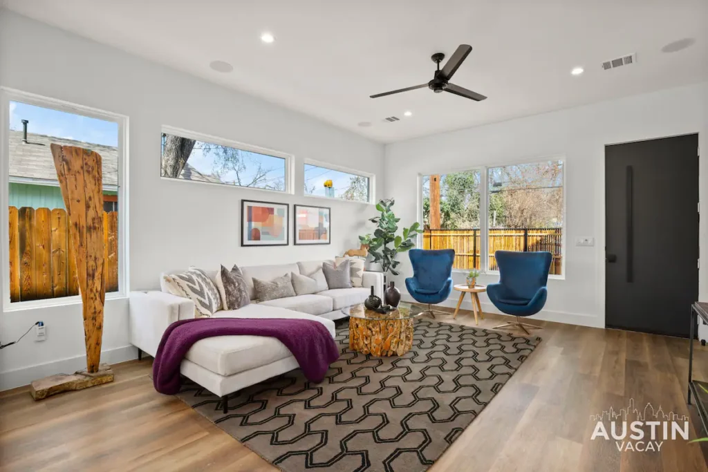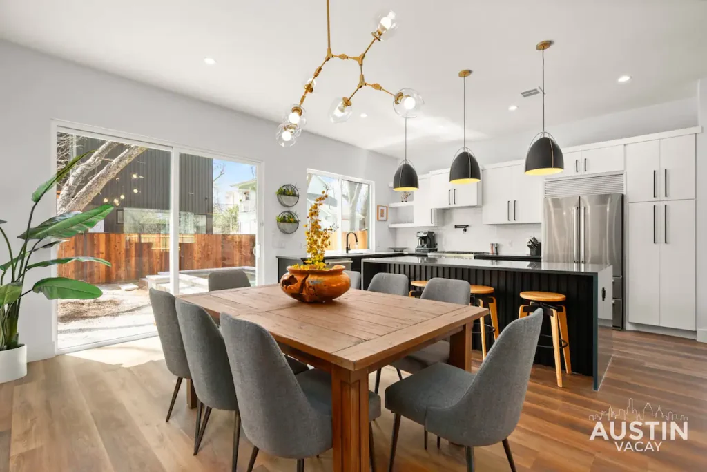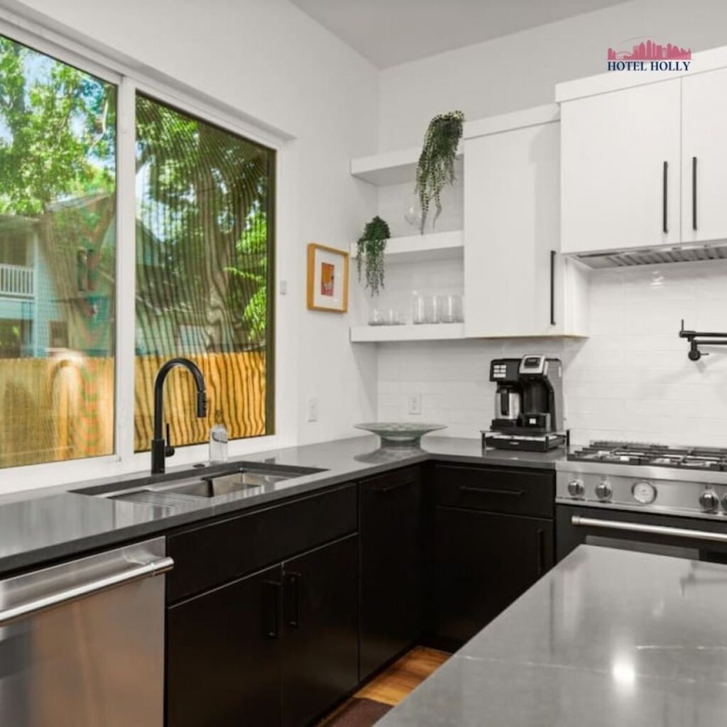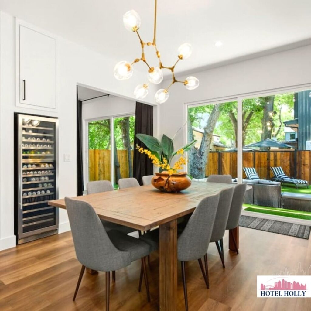 Welcome to the captivating residence at 1505 Holly Street in the vibrant city of Austin, TX. Prepare to be enchanted by this extraordinary home, where every detail has been carefully curated to create a truly exceptional living experience. Step into the powder bath and patio area adorned with custom wallpaper, showcasing the artistic flair that resonates throughout the property. The Bertazzoni black range, meticulously painted in Italy at a Ferrari dealership, adds a touch of sophistication to the gourmet kitchen. The wine tower exudes sleek elegance, perfect for showcasing your collection. Open the large 8 ft sliding glass door and be greeted by the inviting salt-water pool, providing a gentler experience for your skin and hair compared to traditional chlorine pools. The third floor houses a second master ensuite with a private bathroom and a lounge area, offering privacy and comfort for guests or family members. Discover a custom reading nook nestled between the second and third floors, featuring a skylight that floods the space with inspiration. Enjoy an abundance of natural light that fills every room, creating a warm and welcoming ambiance. Immerse yourself in the ultimate audio experience with the in-ceiling stereo system indoors, outdoor speakers, and a comprehensive security system. Indulge in the luxury of the master shower, resembling a car wash, complete with a 20-inch rain head, a hand-held shower, and three invigorating body sprays. Experience the convenience of motion-activated under-cabinet lights in the master, welcoming you as you enter. The warm under-cabinet lighting in the kitchen countertops adds a cozy and inviting touch to the culinary space. Embrace the epitome of refined living at 1505 Holly Street, where impeccable design and thoughtful features harmonize to create a truly remarkable home in the heart of Austin.